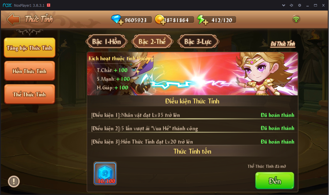 Hệ thống thức tỉnh chia làm nhiều giai đoạn, mỗi giai đoạn phải hoàn thành level thức tỉnh trước đó, thức tỉnh cần hoàn thành nhiệm vụ thức tỉnh và tiêu hao nguyên liệu chỉ định. Hoàn thành bậc thức tỉnh sẽ tăng mạnh các chỉ số sinh lực, tấn công, phòng thủ.